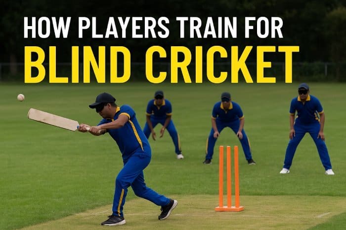 The training of visually impaired (blind) cricketers focuses on sound-based coordination, communication, and physical fitness.